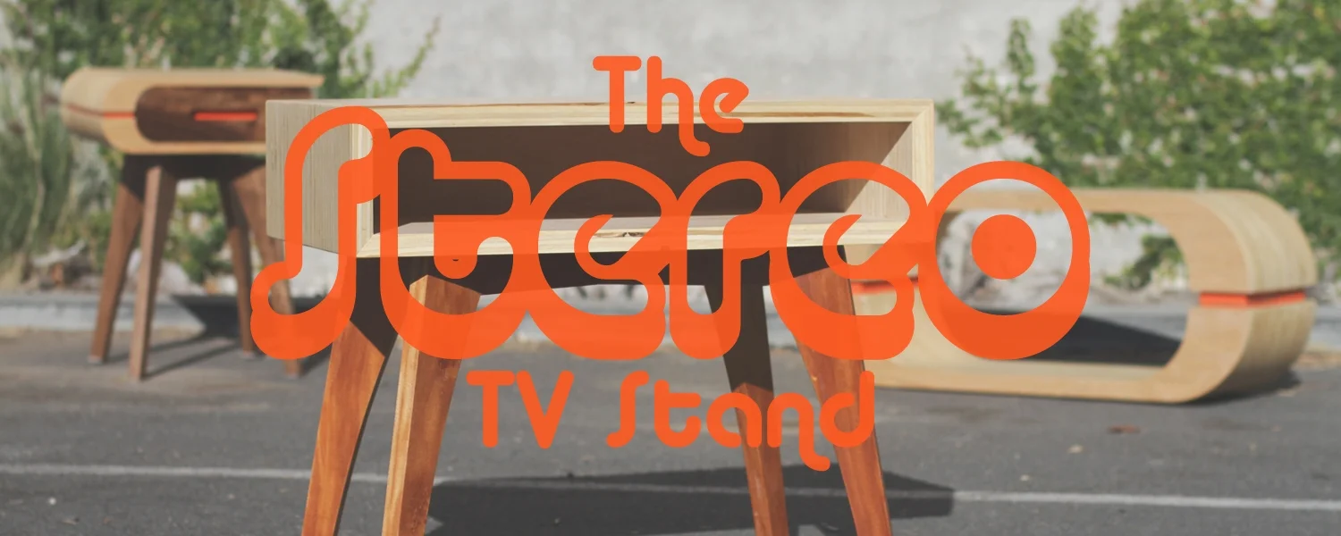 The Stereo TV stand is made from Birch plywood and Mahogany. The plywood is turned on it's edge and layered many times to create a unique striped pattern along all the surfaces. The table features a simple box design that creates versatility and allows the piece to be used in many different ways.